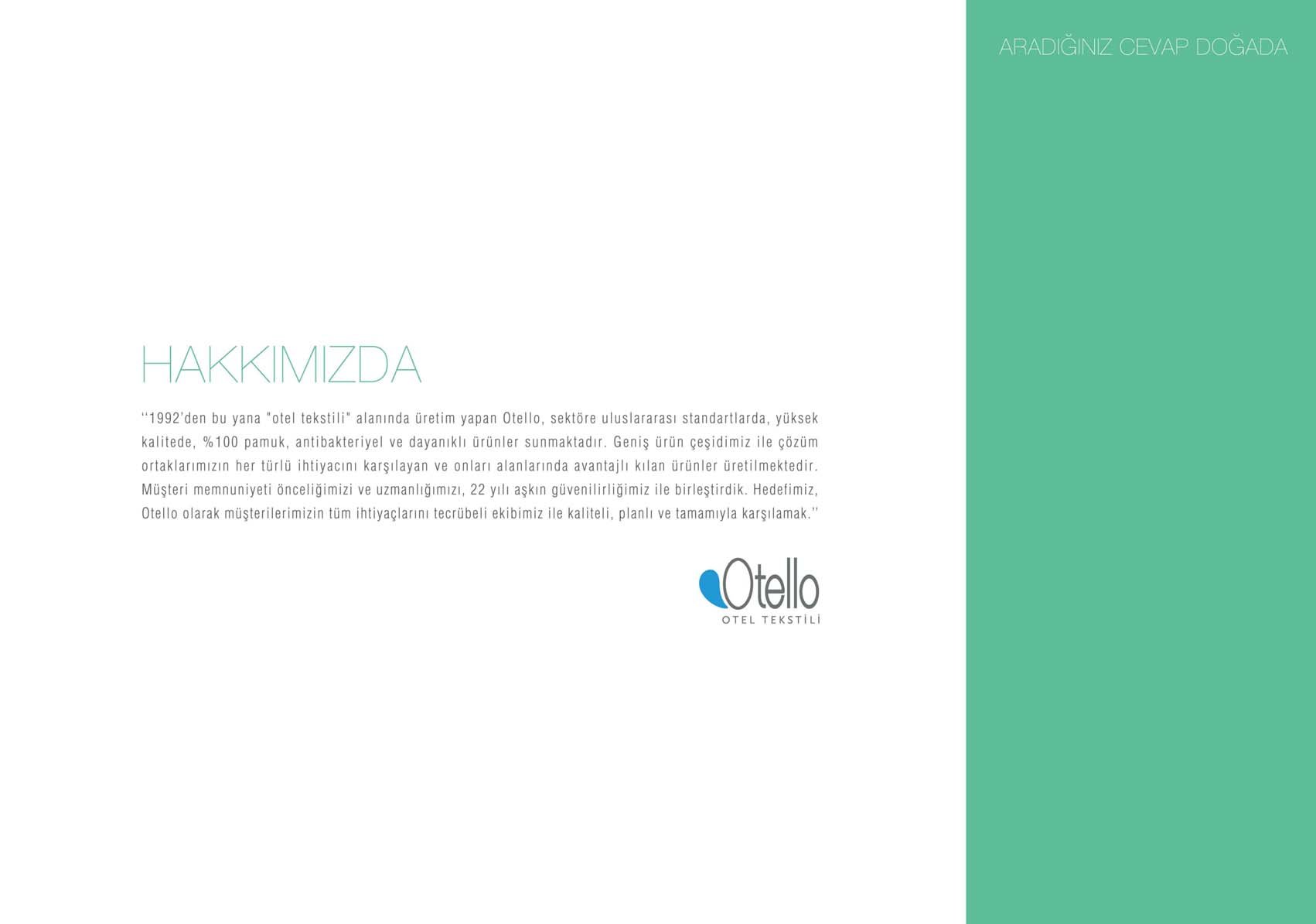 1992’den beri Otel Tekstili üretimi yapan firmamız sektöre kullanımı kolay ve rahat, yıkamaya dayanıklı, uluslararası standartlarda, %100 pamuk, antibakteriyel ürünler üretmektedir.