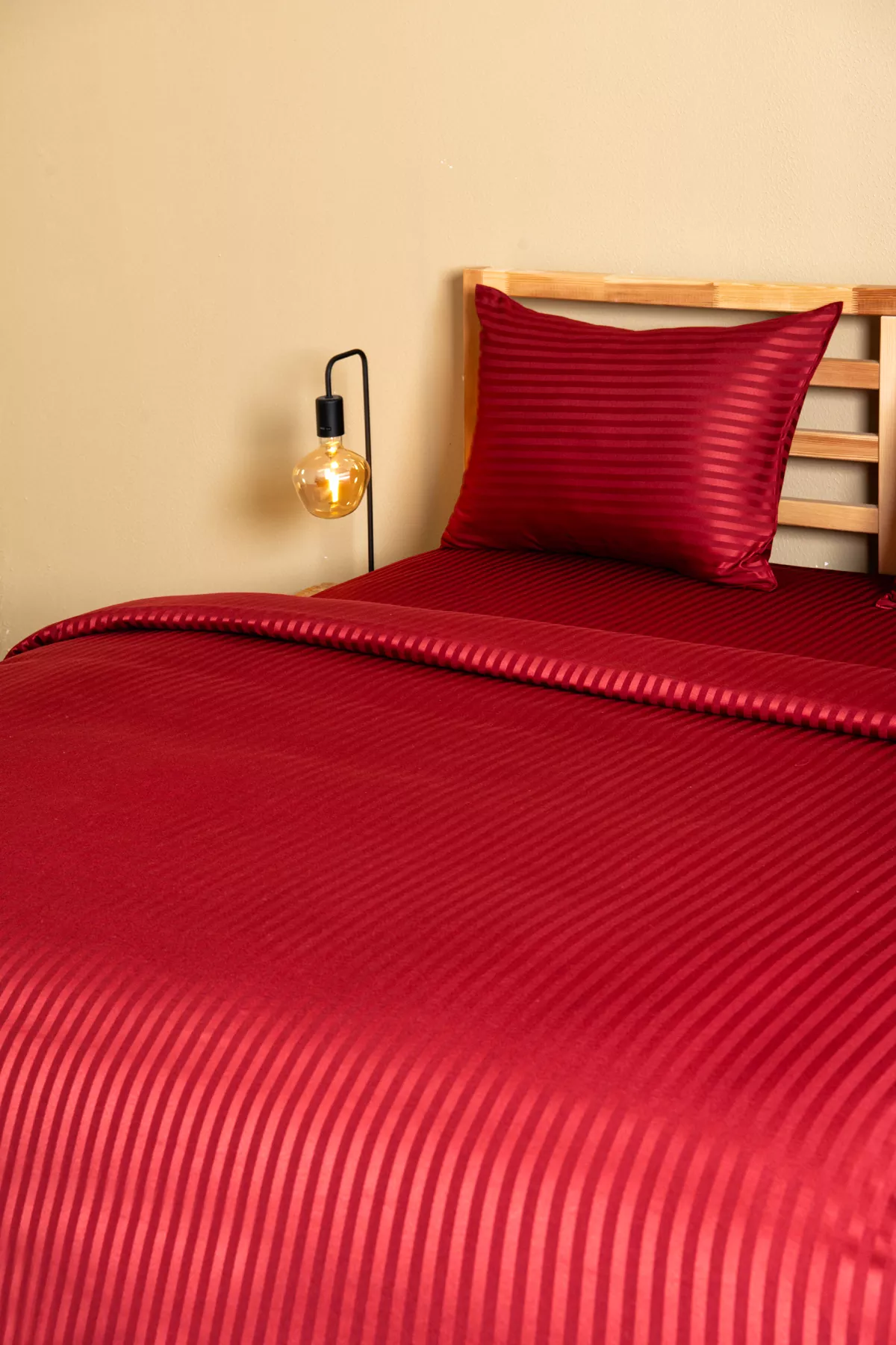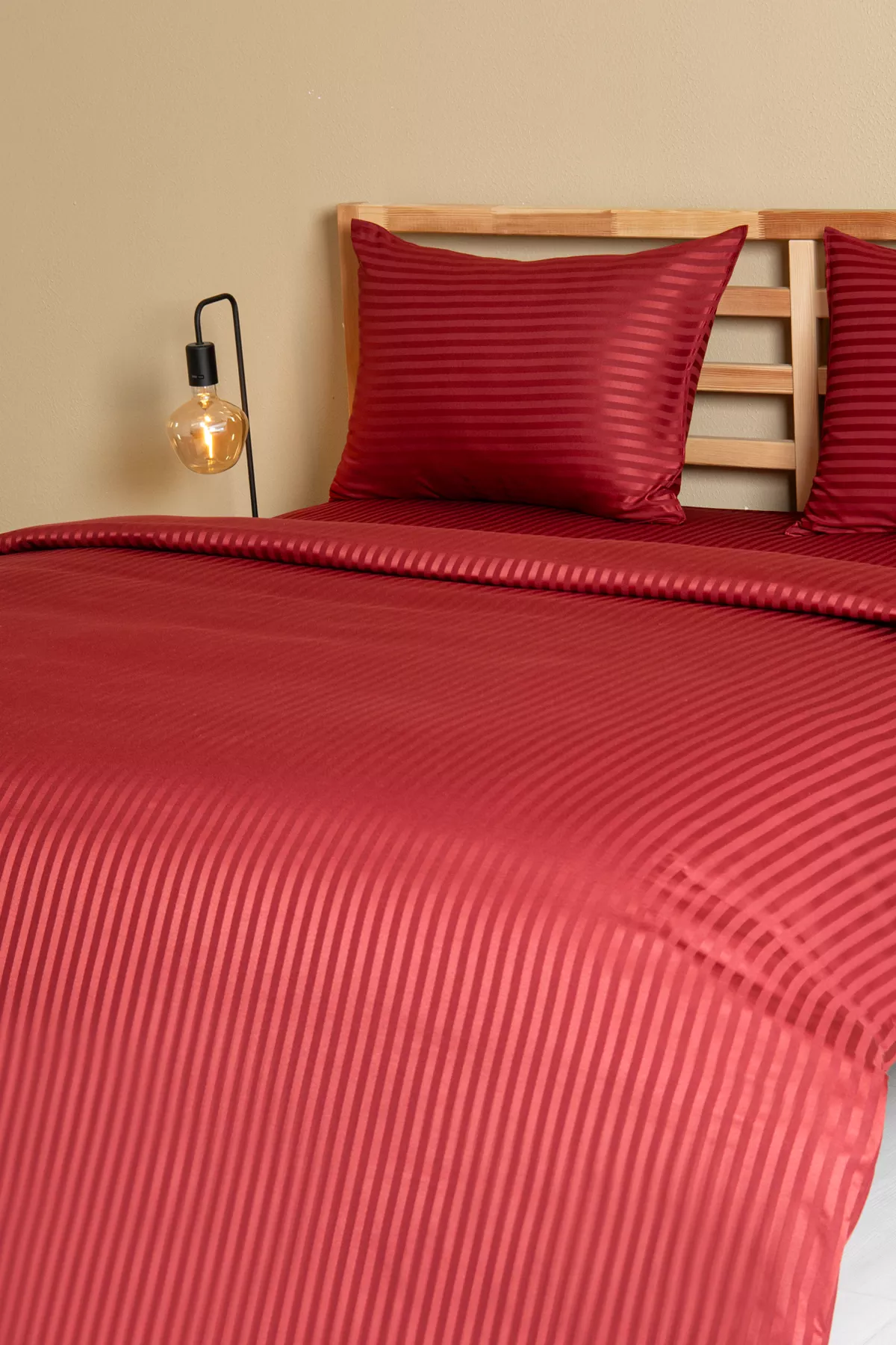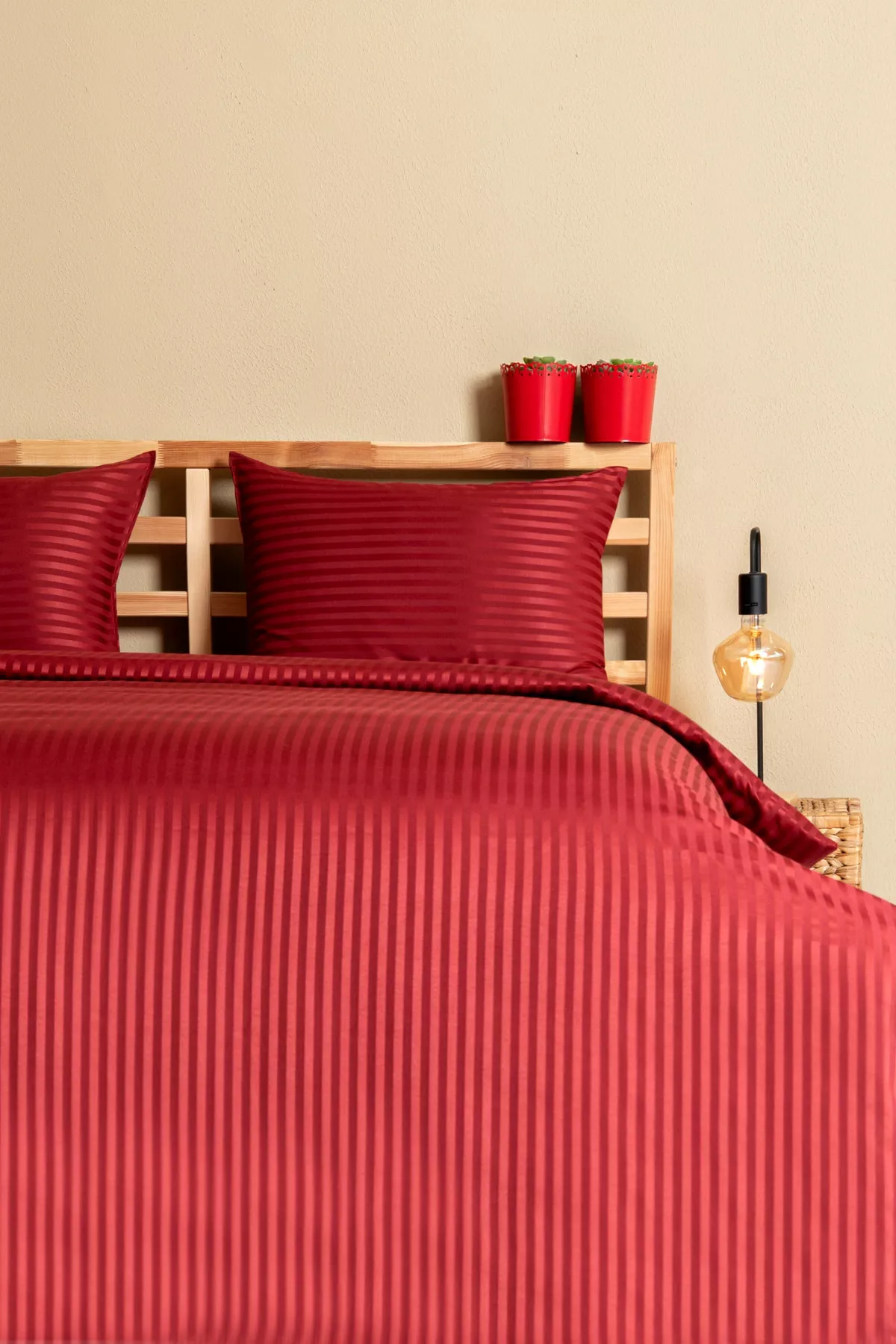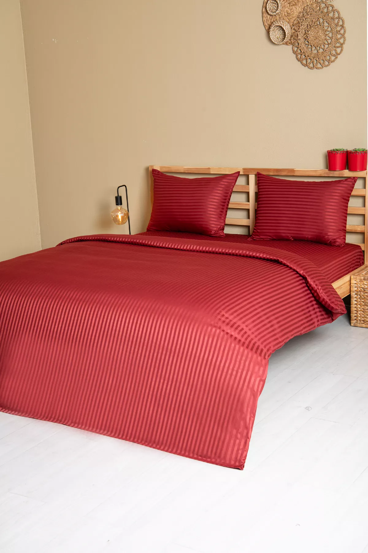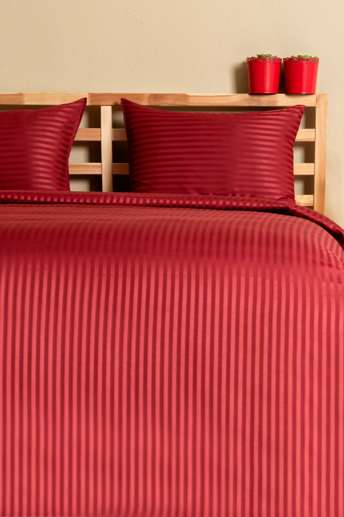 Nevresim Takımı, Çizgili Saten – Kırmızı İnci