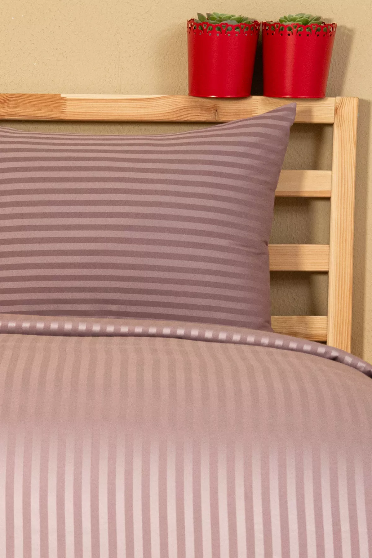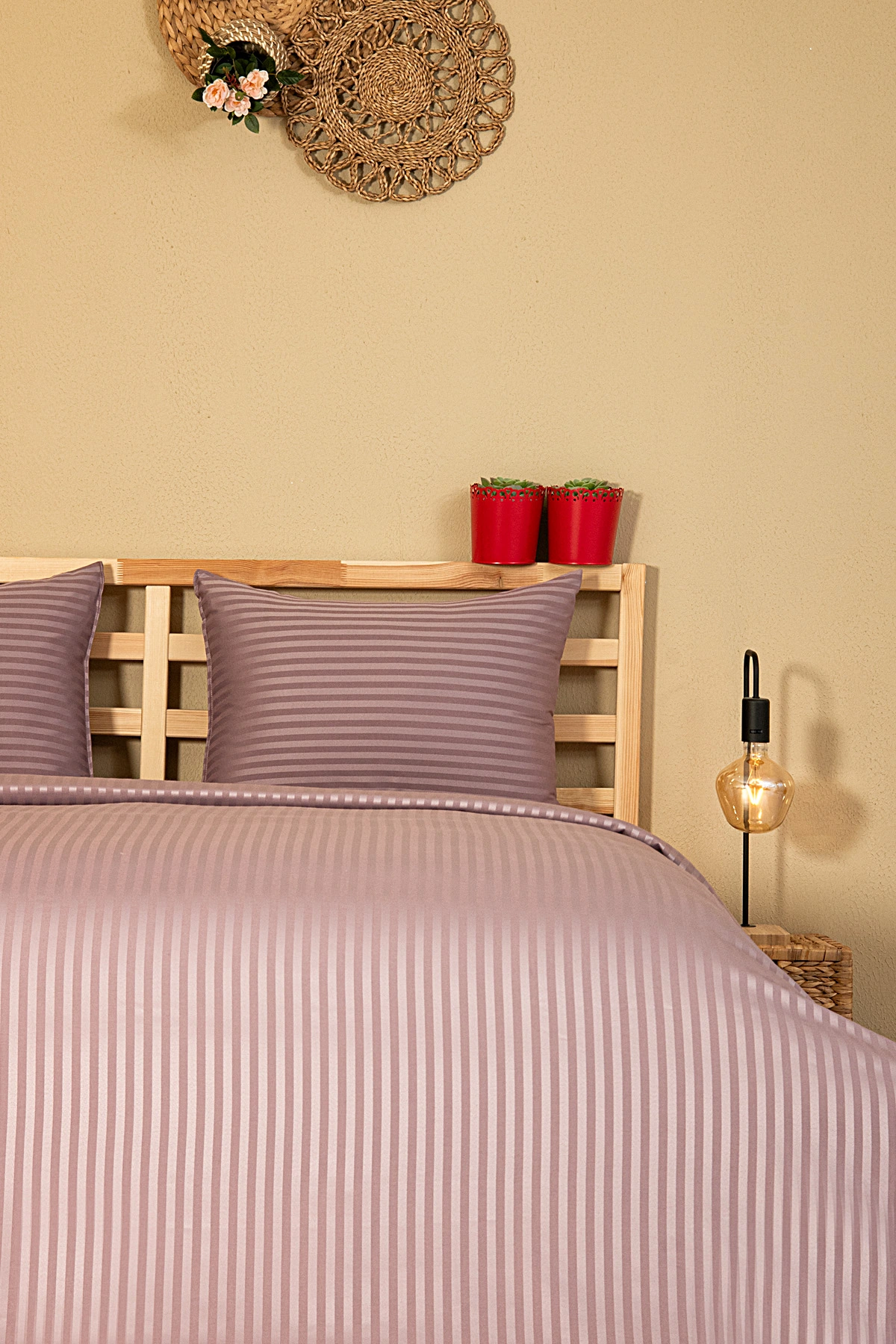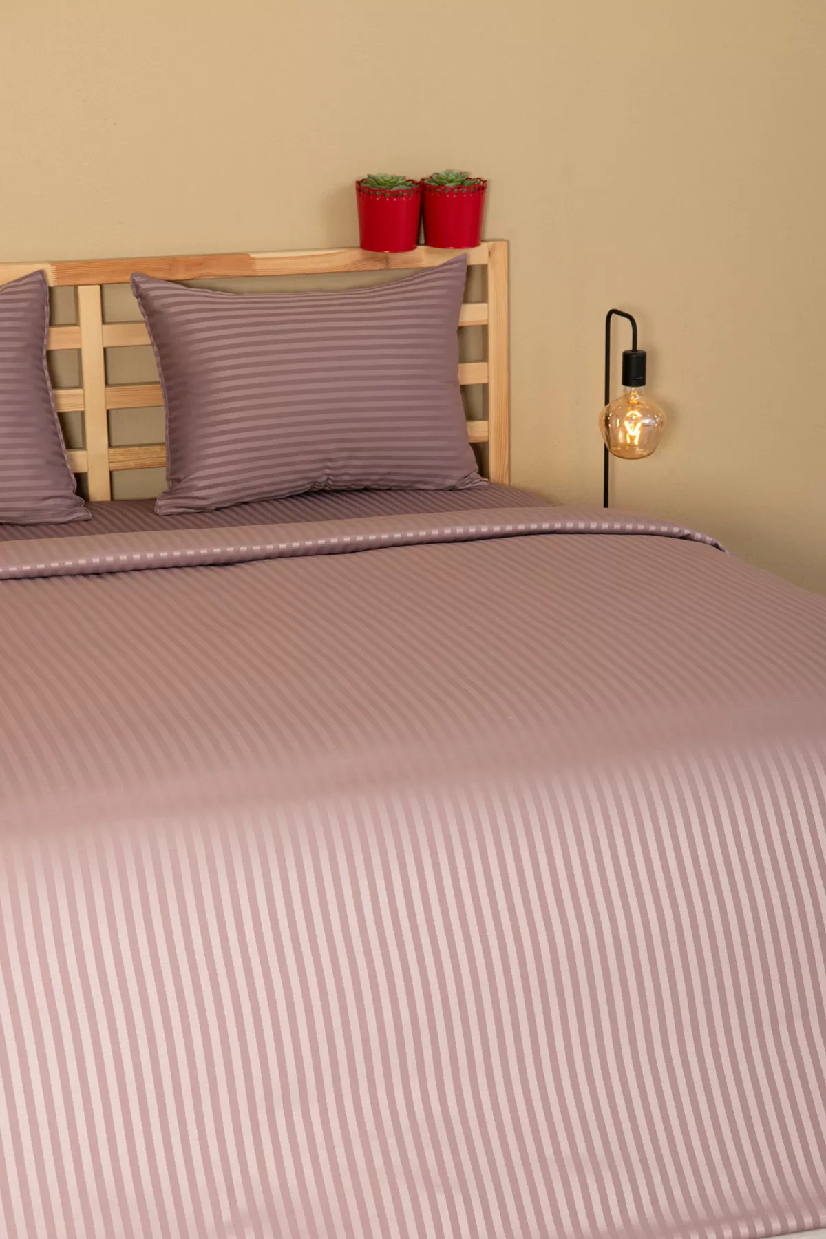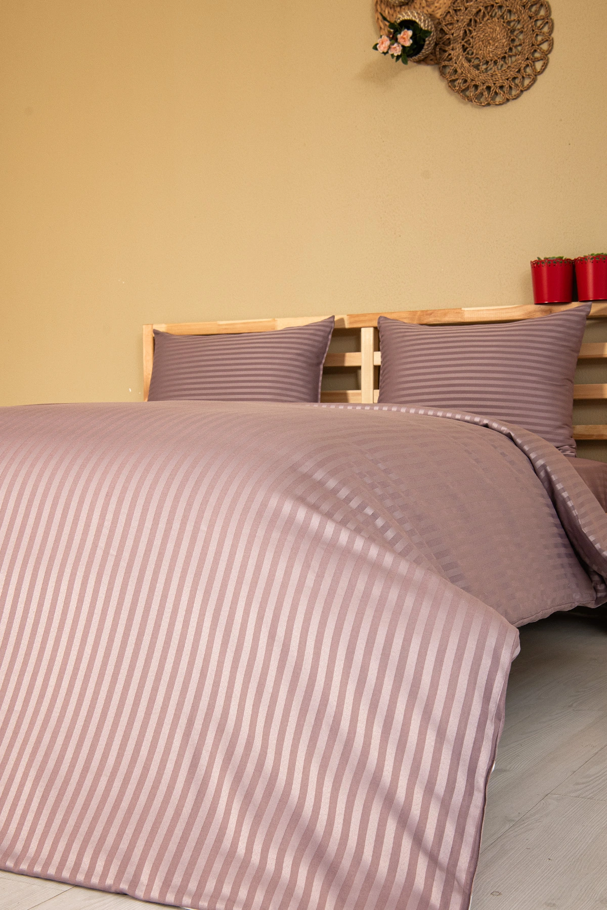 Nevresim Takımı, Çizgili Saten – Mor İnci